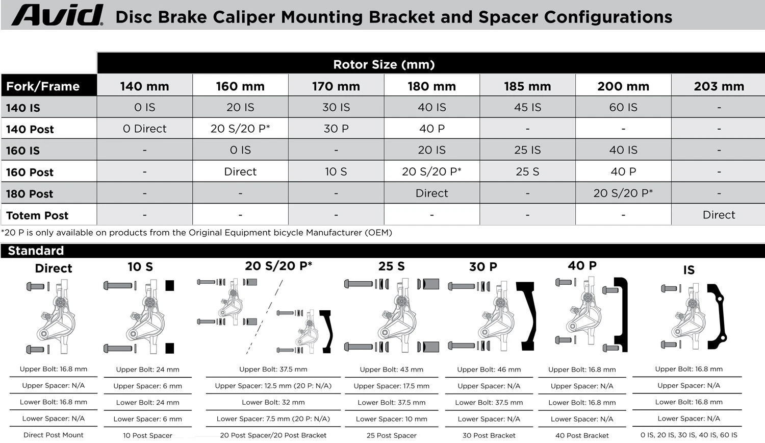 Avid Bremssättel haben alle den Postmount Standard. Mittels Adapter kann man so die Bremsen individuell anpassen. Passend für 160mm Bremsscheibe vorne oder 140mm Bremsscheibe hinten bei internationalem Standard. Mit Befestigungsschrauben.