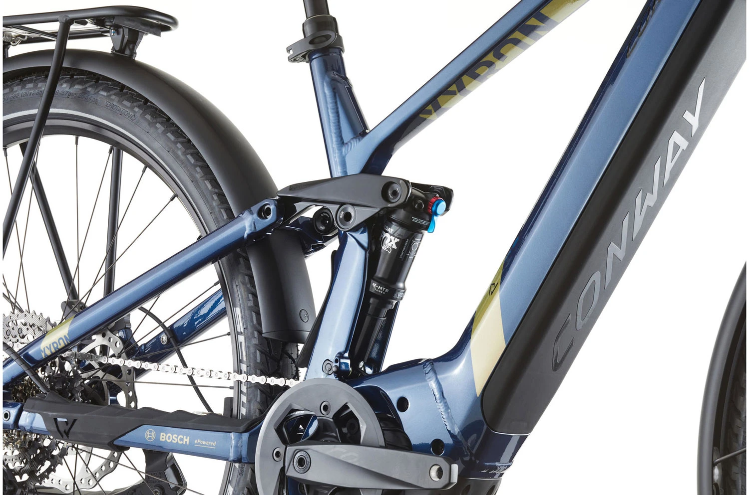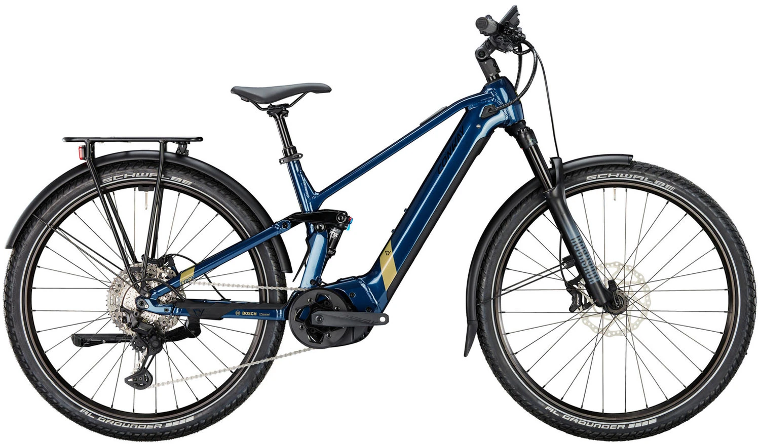 Das Conway Xyron SUV 6.9 ist das wohl bequemste und dennoch alltagstauglichste E-MTB. Ausgestattet mit Licht, Gepäckträger und Schutzblechen vereint es den Komfort eines E-Fullys mit der Praktikabilität eines urbanen Bikes. Es überzeugt mit einem leistungsstarken Bosch Performance CX Gen 4 Motor. Der 750 Wh große Akku versorgt dich zuverlässig mit dem nötigen Strom, damit du noch länger die Zeit auf deinem Bike genießen kannst.