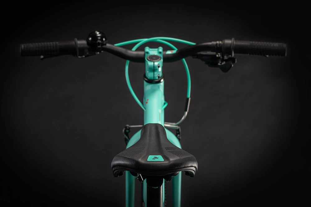 Eine Microshift 9-fach Schaltung mit 11-42T Kasette und einer erweiterten übersetzungsbandbreite unterstützt Nachwuchsfahrer effizient auf dem Weg nach oben, auch wenn’s mal richtig steil wird. Den schlankeren Lenker mit Griffen können auch kleine Kinderhände mühelos umfassen und damit das Bike präzise lenken und sicher abbremsen. Griffige Reifen und ein gefälliges Handling runden das Acid 200 SL ab. Keine Frage, die Kids werden es lieben!
