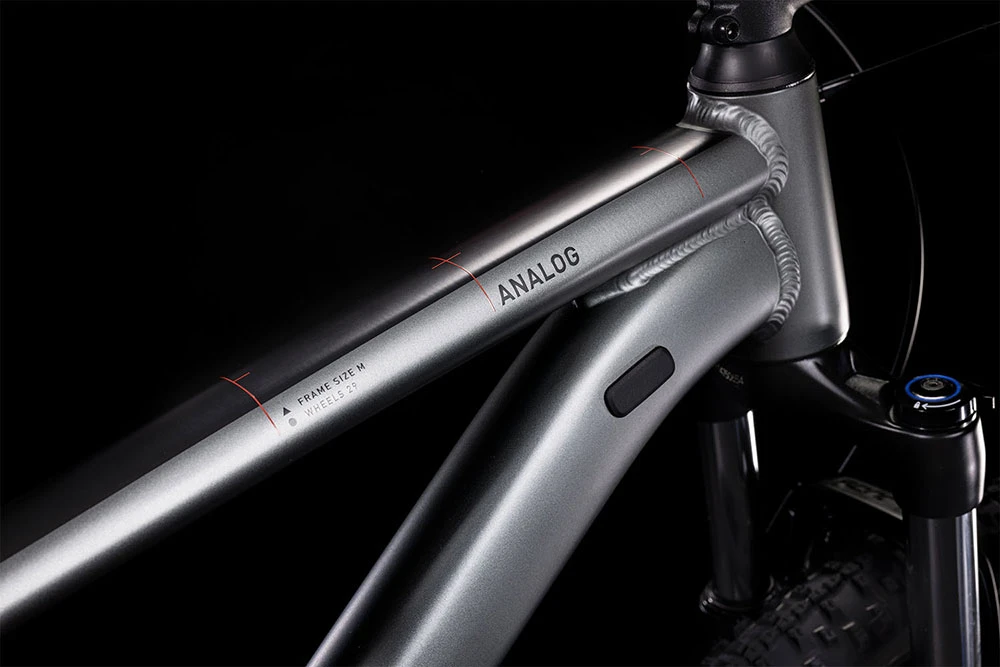 Der brandneue Analog Rahmen besticht 2022 mit einem überarbeiteten, supercleanen Look. Verantwortlich dafür: das im Smooth Welding Verfahren hergestellte Steuerrohr und Sattelstützenprofil. Außerdem haben wir ihm ein geschraubtes Tretlager gegeben und die Züge ins Innere verlegt, damit sie ihre Aufgabe lange machen und leicht gewartet werden können. Es gibt sogar eine Aufnahme für eine Flat-Mount-Scheibenbremse, die nahtlos in die Seitenständeraufnahme integriert ist. Montagepunkte für ACID Schutzbleche und Gepäckträger sind auch mit dabei. Die überarbeitete Geometrie hat ein niedrigeres Oberrohr und konifiziertes Steuerrohr für noch zuverlässigeres Handling. Die Kabelzüge verlaufen im Inneren, was die Wartung erleichtert. Außerdem bleibt viel Platz für breite, griffige und komfortabel rollende 2.25 Zoll Reifen. Wir haben unserem SizeSplit System übrigens weitere Größenoptionen hinzugefügt – dadurch findet jeder und jede die perfekt passende Analog Rahmengröße für sich. Und da mit wachsendem Fahrkönnen auch die Ansprüche steigen, kann der Rahmen mit einer versenkbaren Sattelstütze ausgestattet werden.
