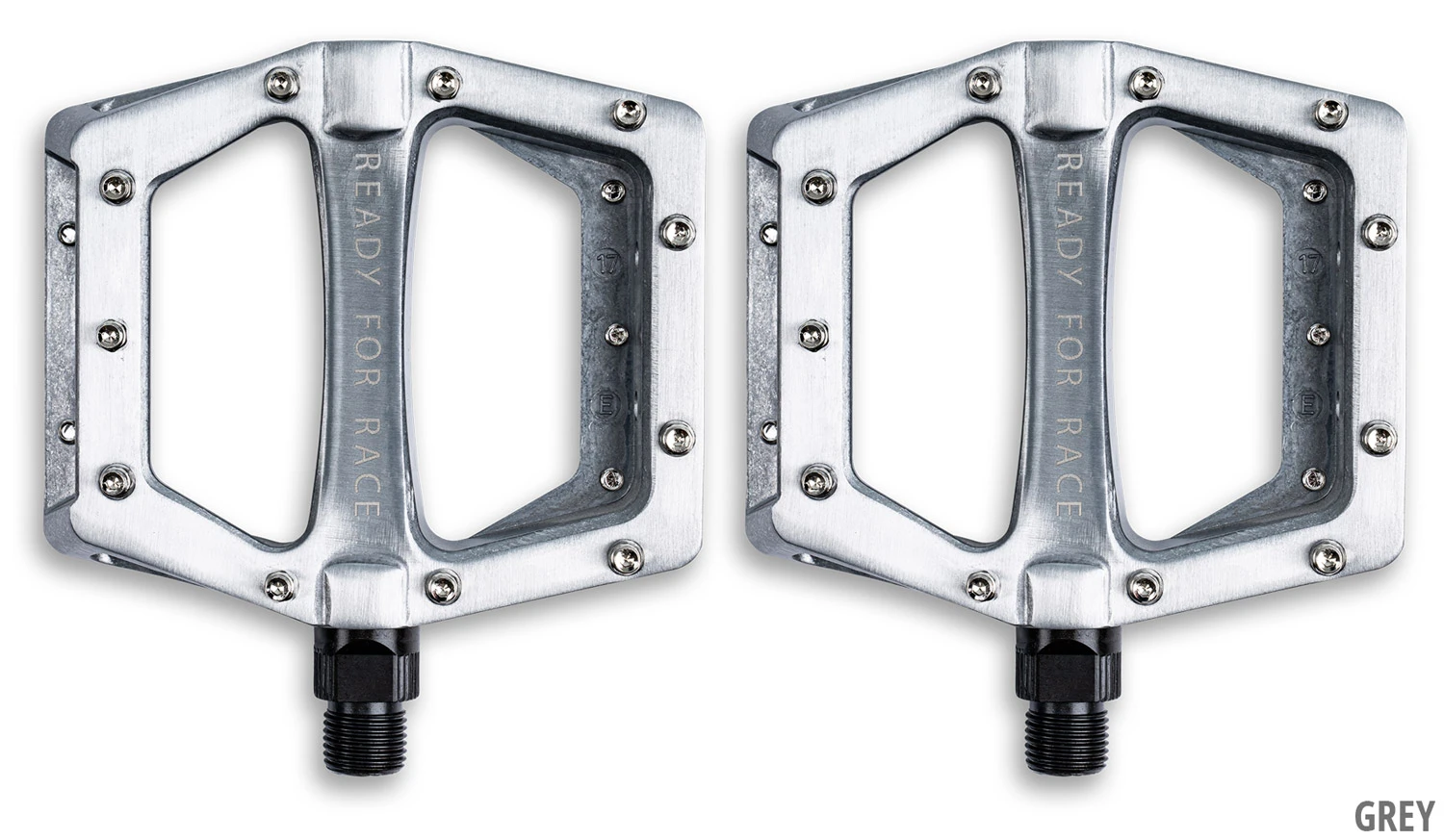 Die leichten RFR Flat-Pedale sind aus Aluminium hergestellt und werden mit einer Cr-Mo-Achse verbaut. Die Anti-Rutsch-Pins sind austauschbar und bieten besten Halt am Fahrrad.